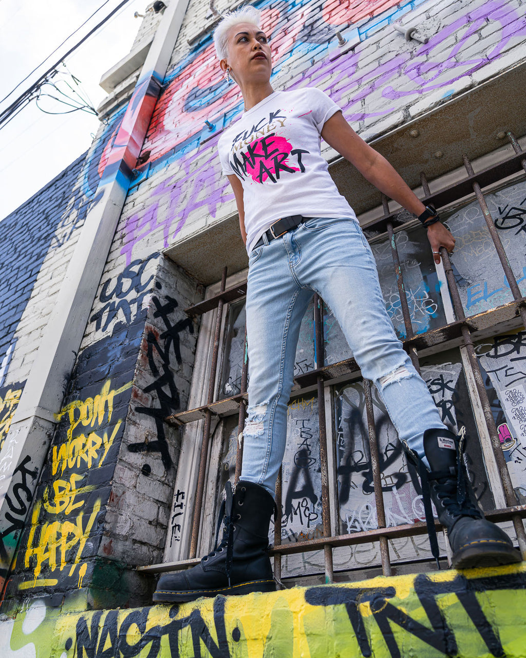 Somewhere between art and advocacy, these shirts blur the lines of fashion and activism with a mix of digital and hand painted graphics
